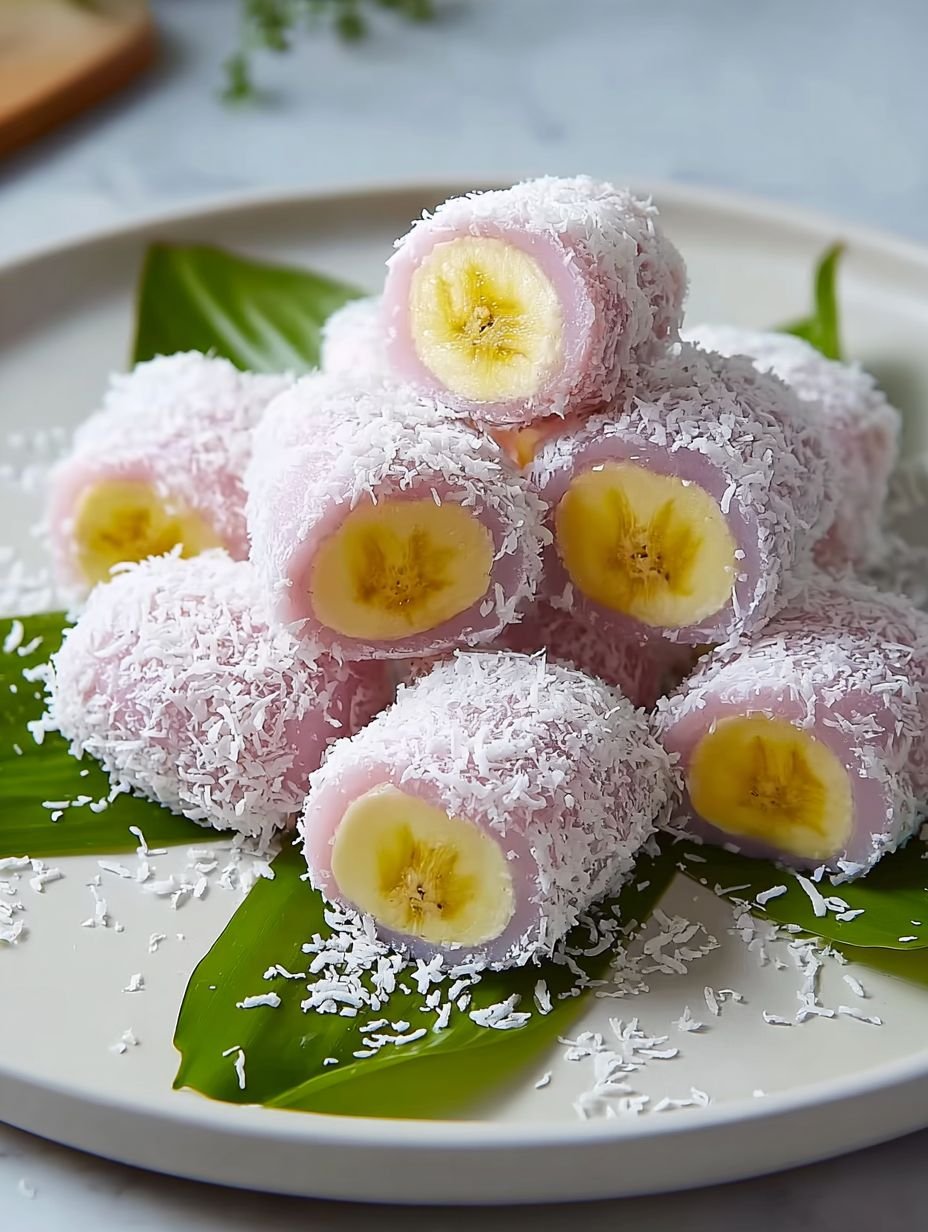 Sweet & Chewy Banana Mochi Rolls with Coconut
