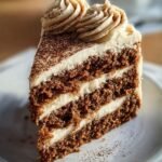 11. **Finish Frosting:** Frost the sides and top of the cake with the remaining frosting. If desired, pipe decorative swirls on top and dust lightly with a pinch of ground cinnamon or cocoa powder.
