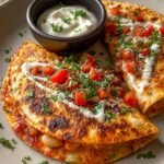 These Airfryer Crispy White Bean Quesadillas present a harmonious blend of textures and flavors. Golden, crisp tortillas encase a hearty and savory filling of tender white beans, gently seasoned and combined with a rich tomato base and melted cheese. Each quesadilla is thoughtfully garnished with fresh diced tomatoes, vibrant herbs, and a cool, creamy drizzle, offering a balanced and satisfying meal with every bite.