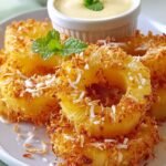 There you have it – your ultimate guide to creating the most delectable Quick Crispy Coconut Pineapple Rings. This recipe truly promises a taste of sunshine and a delightful escape. The perfect harmony of juicy, sweet pineapple, the golden, crunchy toasted coconut, and the creamy vanilla dip creates a culinary experience both simple to achieve and utterly unforgettable. Go ahead, gather your ingredients, and prepare to bring a slice of paradise right into your own home.
