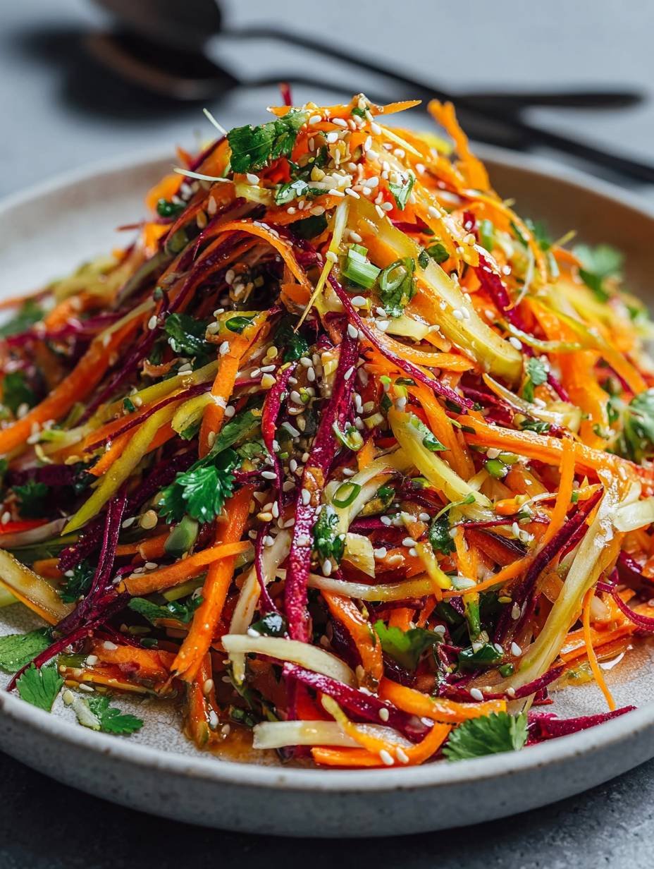 The crunch of thinly shaved carrots, kissed with a savory, sweet sesame dressing, dances on your palate, a vibrant burst of fresh flavor in every forkful. This salad isn’t just food; it’s a memory in the making, much like that time I accidentally mistook a mandoline for a cheese grater – the results were equally thin, though slightly less finger-friendly.