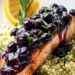 - **Glaze and Serve:** Once salmon is cooked, spoon a generous amount of the warm blueberry glaze over each fillet. Serve immediately with the lemon herb couscous. Garnish with fresh rosemary sprigs and lemon wedges.