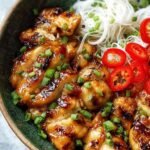 This dish truly offers a symphony of flavors. Fragrant lemongrass and ginger meet a delightful balance of sweet, savory, and a hint of warmth. Enjoying this Sweet & Spicy Glazed Chicken with Rice Noodles is an experience that awakens the senses. From the tender, caramelized chicken to the delicate vermicelli, every bite is a joy. This is an approachable recipe, delivering restaurant-quality results right in your kitchen. So, gather your ingredients and prepare to savor every delicious bite of this vibrant and satisfying meal!