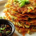 Once cooked to perfection, transfer the crispy vegetable pancakes to a wire rack. This allows any excess oil to drain away, which is vital for maintaining their delightful crunch. Serve these glorious golden patties immediately with the prepared Asian dipping sauce. Garnish with a few extra chopped green onions for a fresh touch and enjoy the ultimate crunchy experience.