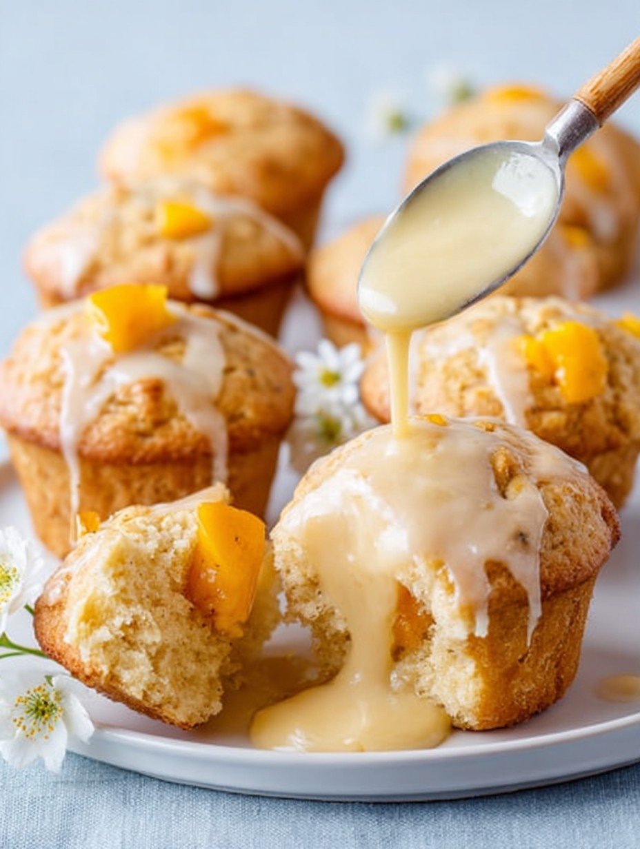 While the passion fruit glaze provides a unique tangy counterpoint that really elevates the flavor of these sweet mango muffins, you can certainly substitute it if needed. A simple lemon or lime glaze would work beautifully, offering a similar zesty kick. Just whisk powdered sugar with 2-3 tablespoons of fresh lemon or lime juice until you achieve a smooth, pourable consistency. The goal is to provide a bright, acidic contrast to the inherent sweetness of the mango.